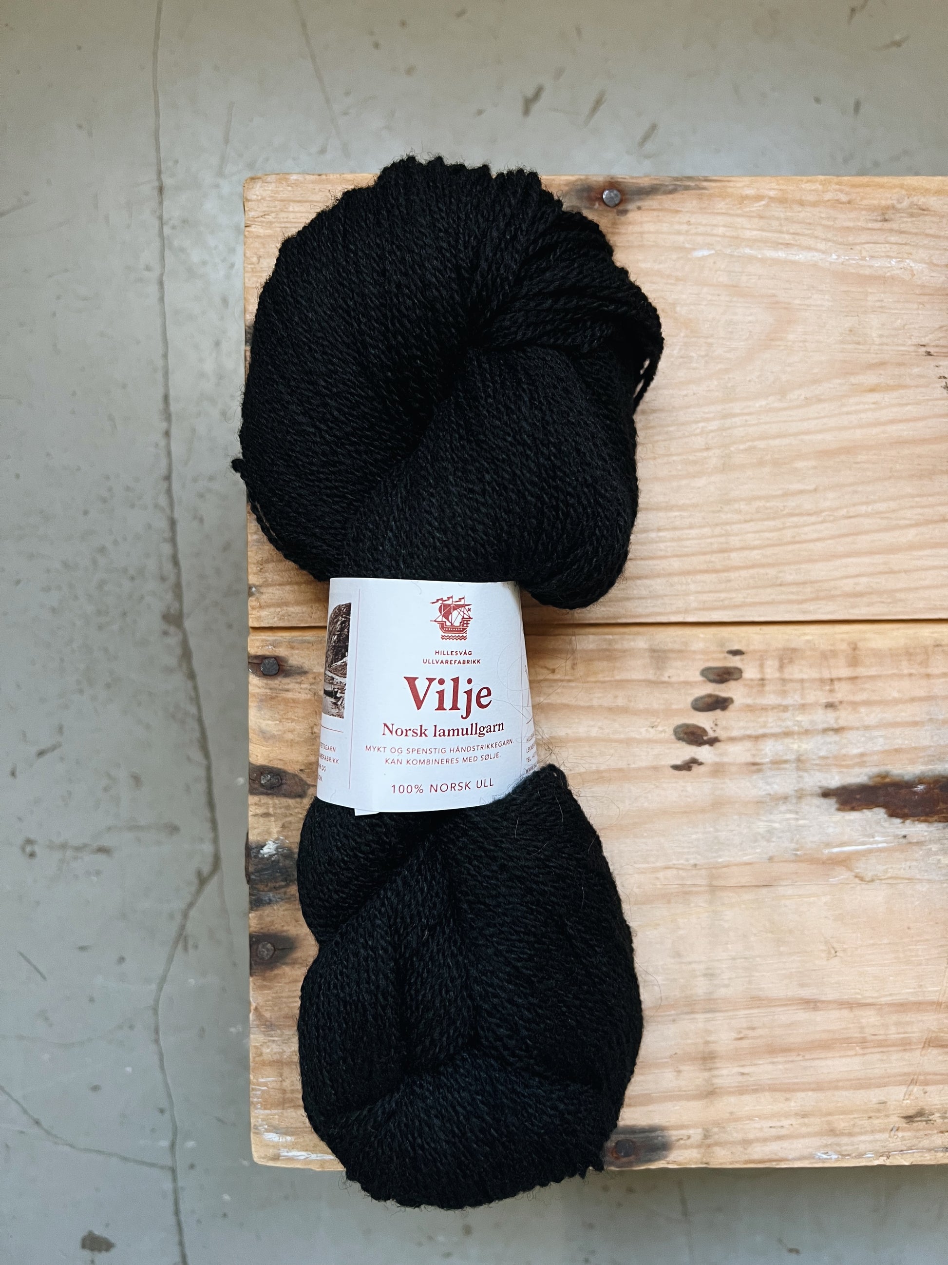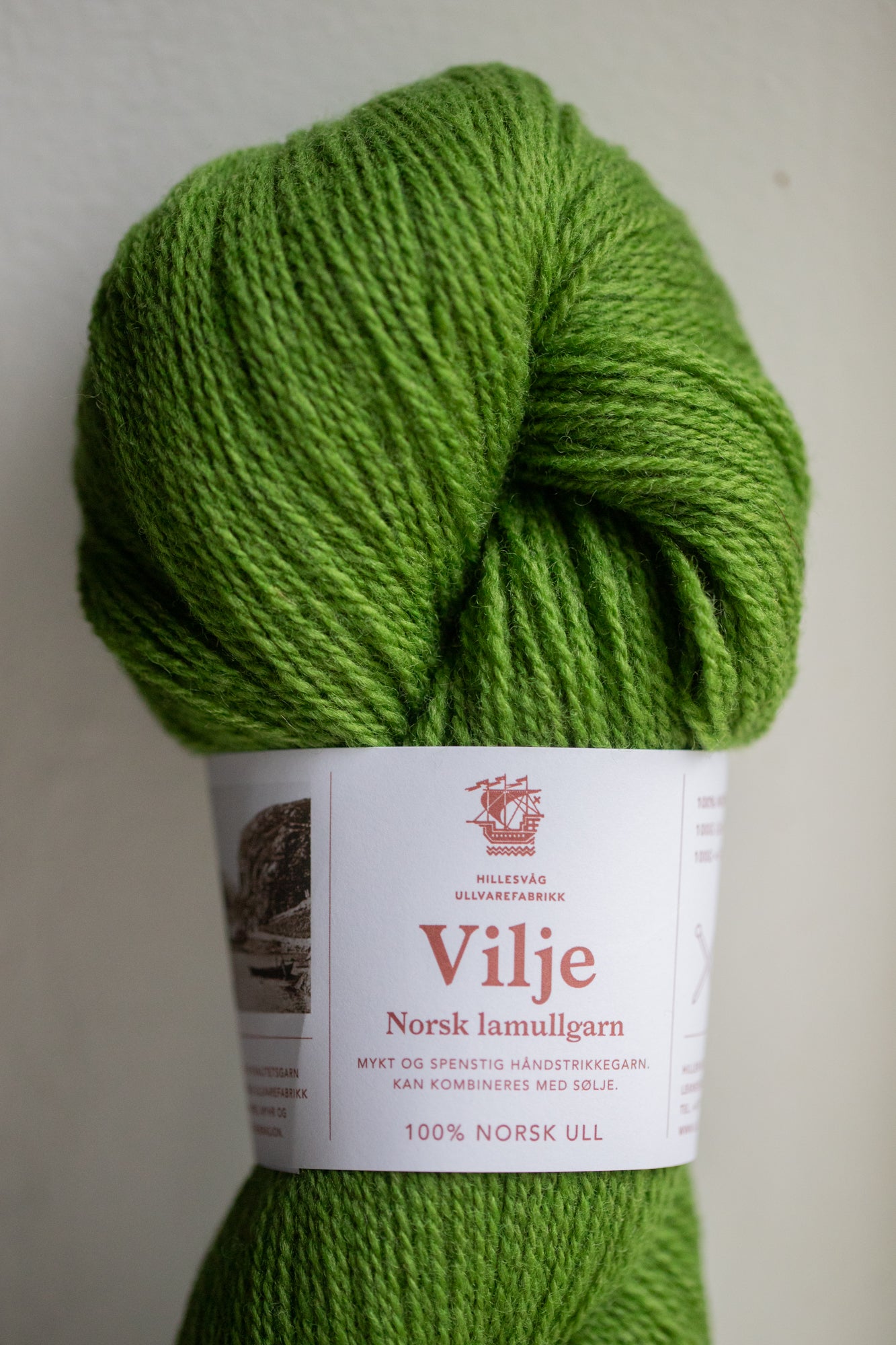 Vilje lammullgarn is a 2-ply woolen spun yarn made from 100% extra fine Norwegian lambswool of around 28 micron from the Norsk Kvit Sau breed. It's a soft, lustrous fibre with good crimp, and the dyes used are all GOTS-certified.