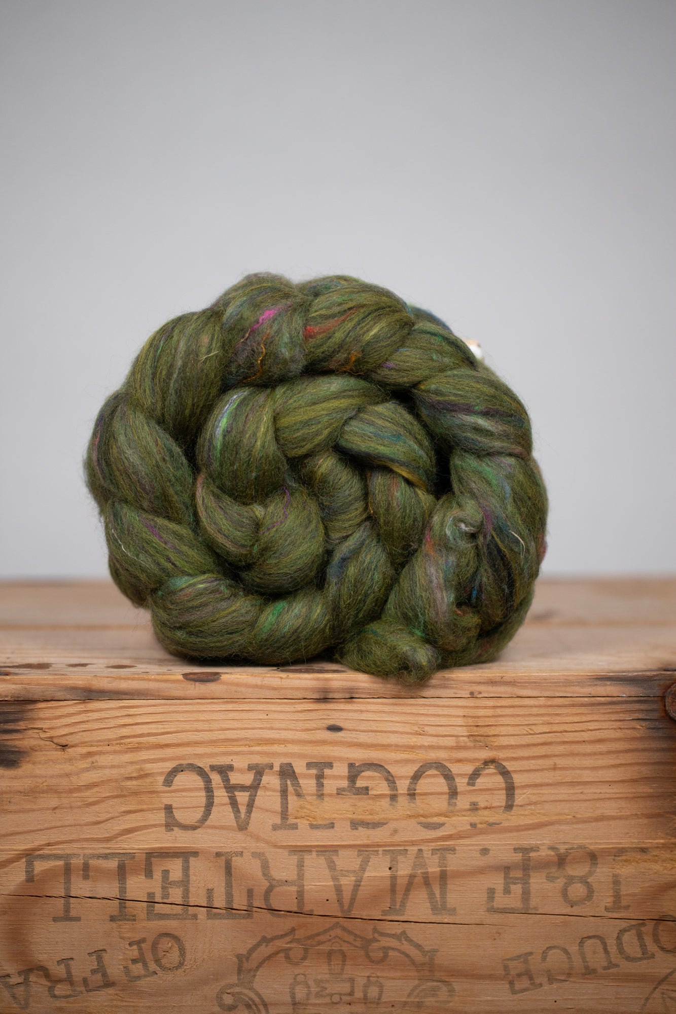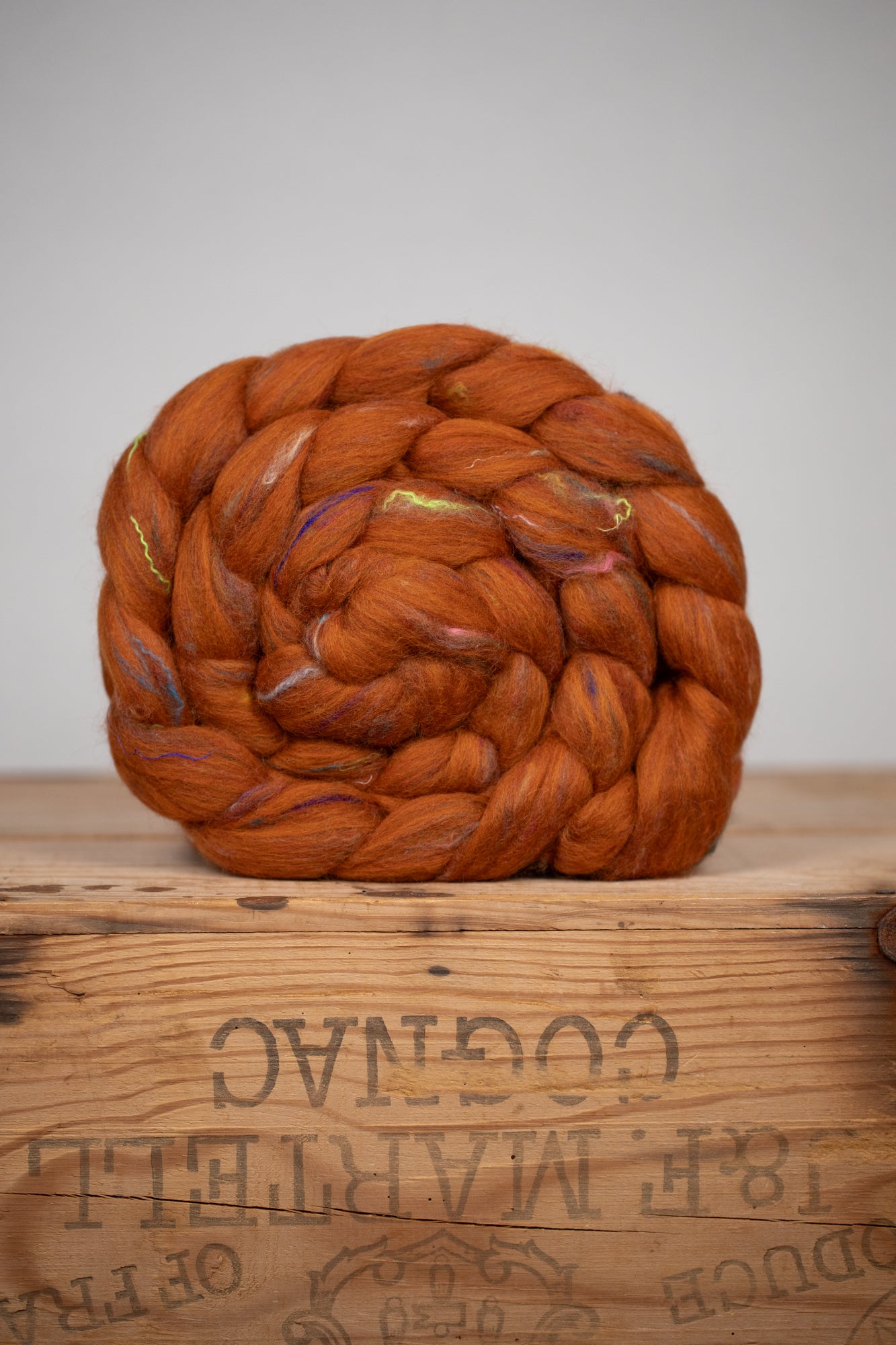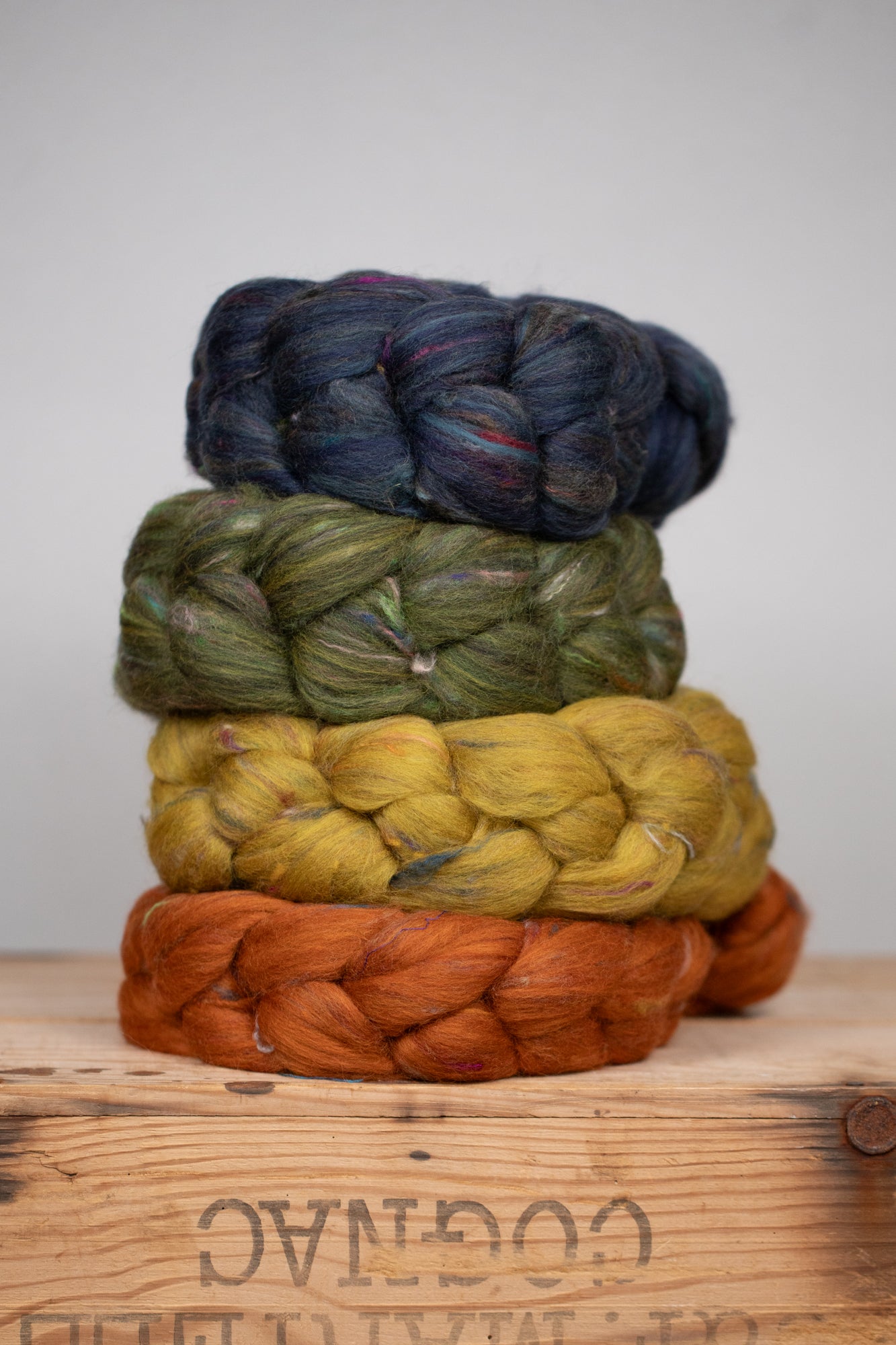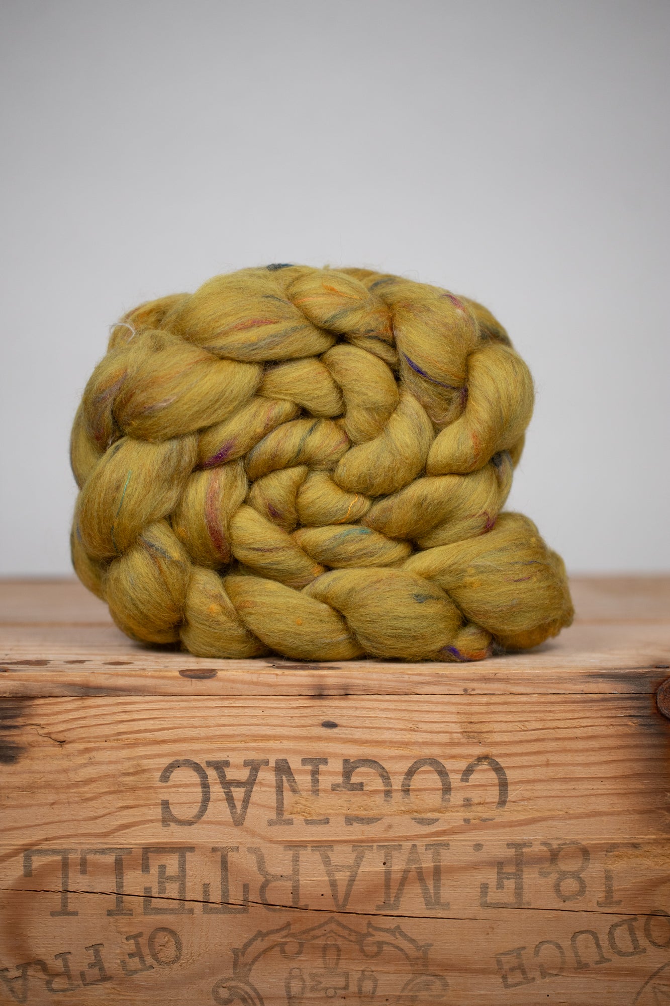 La Bien Aimée Confetti Fiber is the fiber of La Bien Aimée's Confetti yarn before it is spun. It contains 50% 18.5 micron Merino wool, 30% Shetland wool, and 20% recycled LBA threads. Those recycled threads are what give Confetti yarn its pops of color. This fiber makes spinning tweed yarn easy because the recycled threads are already combed into the top. No preparation required!