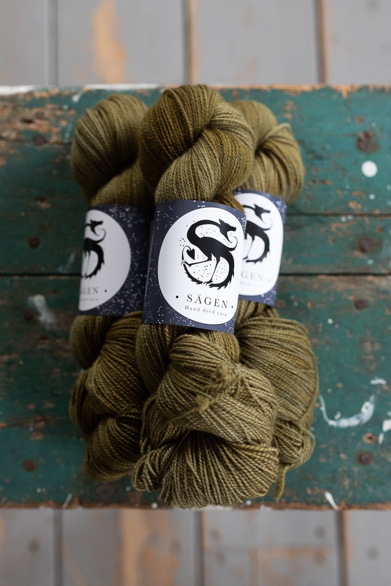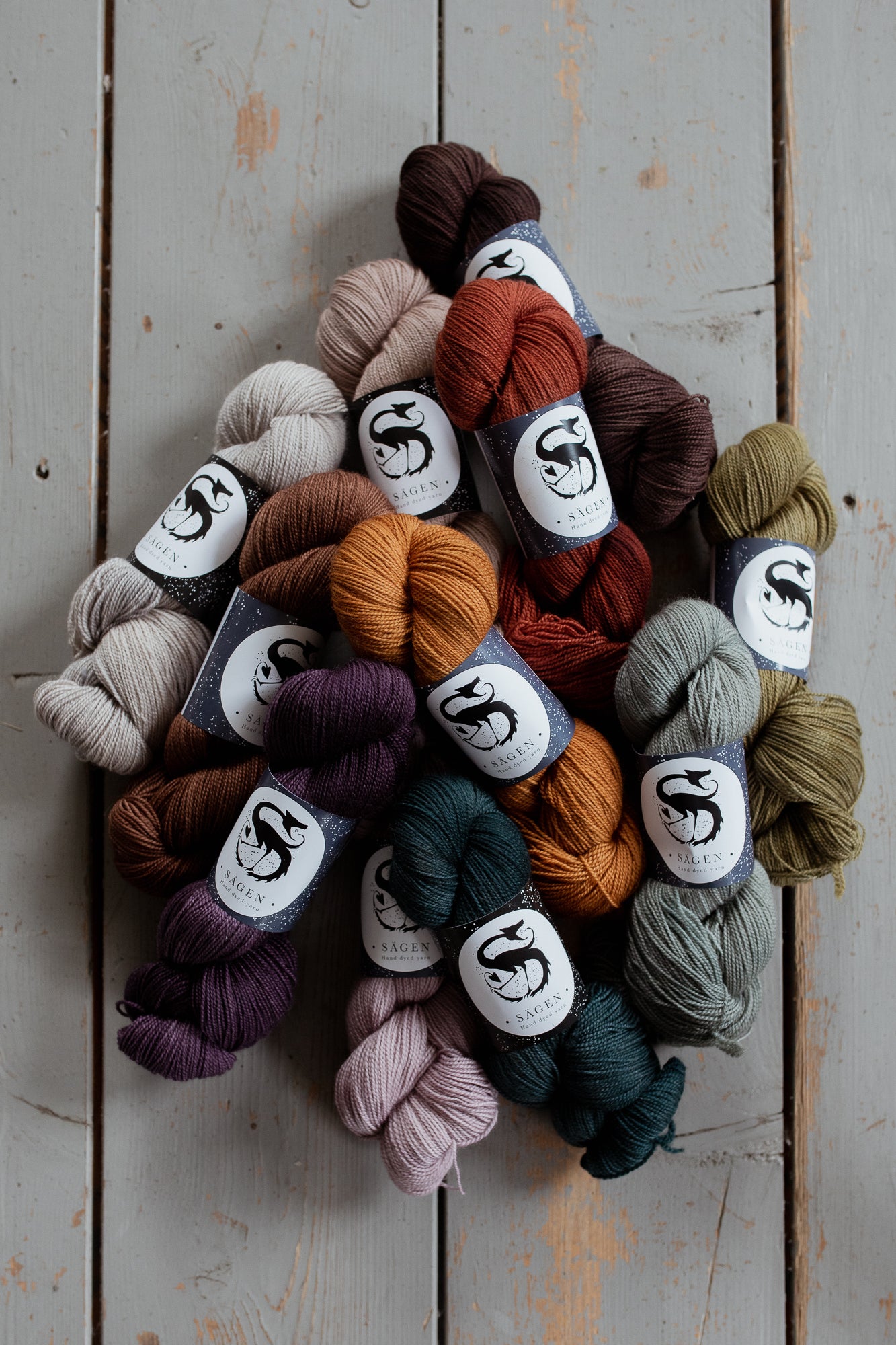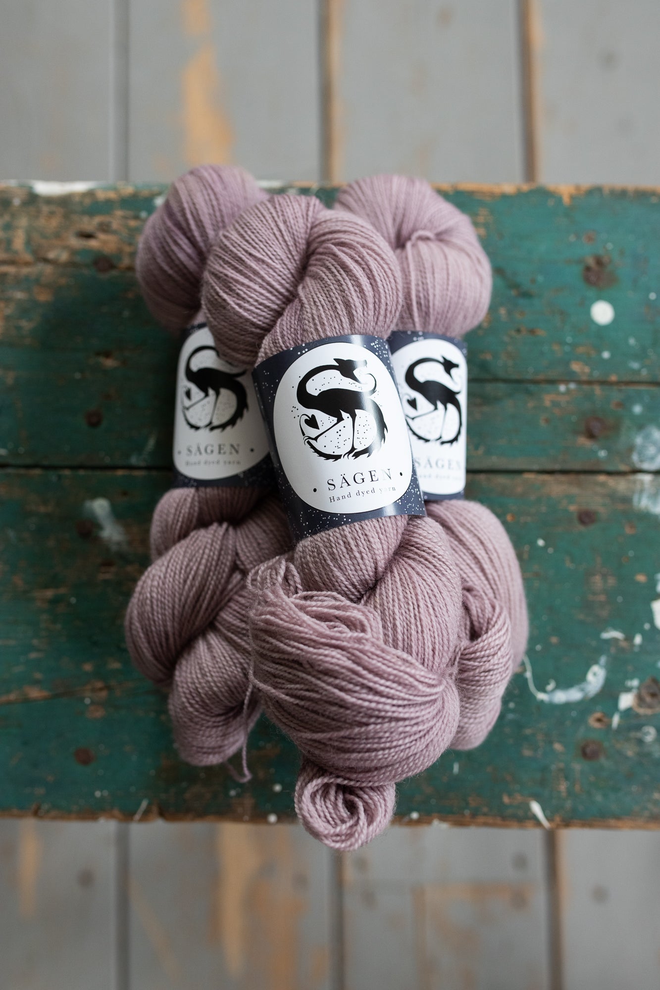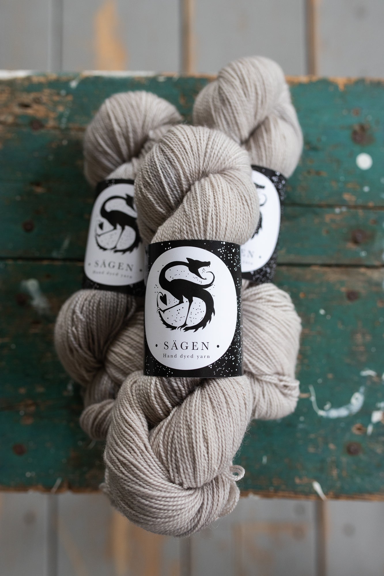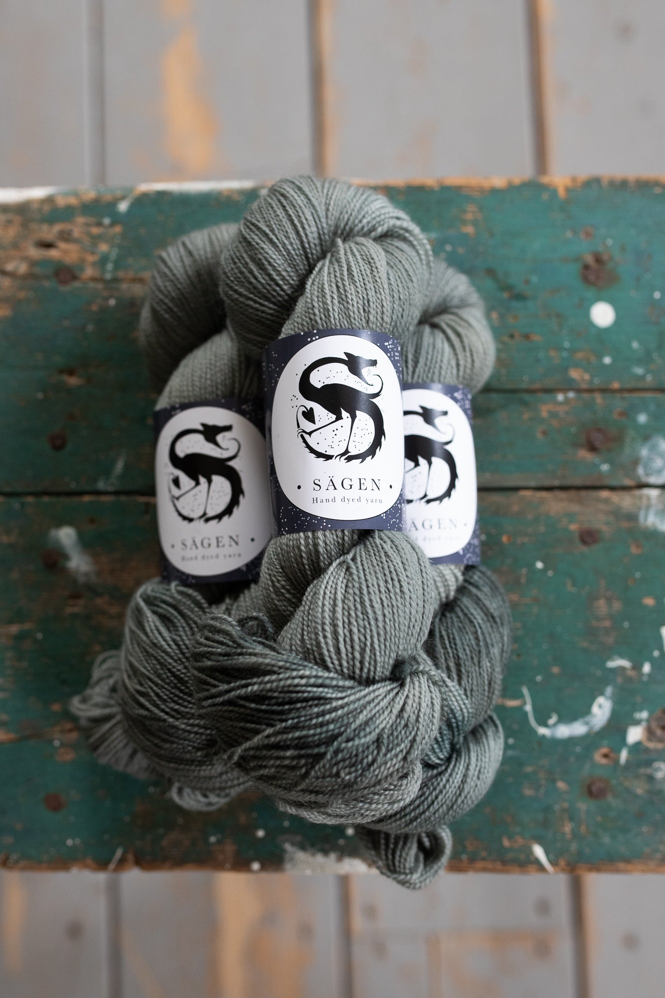 All yarns from Sägen are hand dyed by Lotta H Löthgren, using high quality acid dyes. The colourways are named after creatures, entities, details or ideas from folklore and old stories, and Sägen is the Swedish word for a certain kind of folk story. My aim is to create a palette of colours that are just as beautiful on their own as they are to combine, and that knitters and makers can return to over the years.