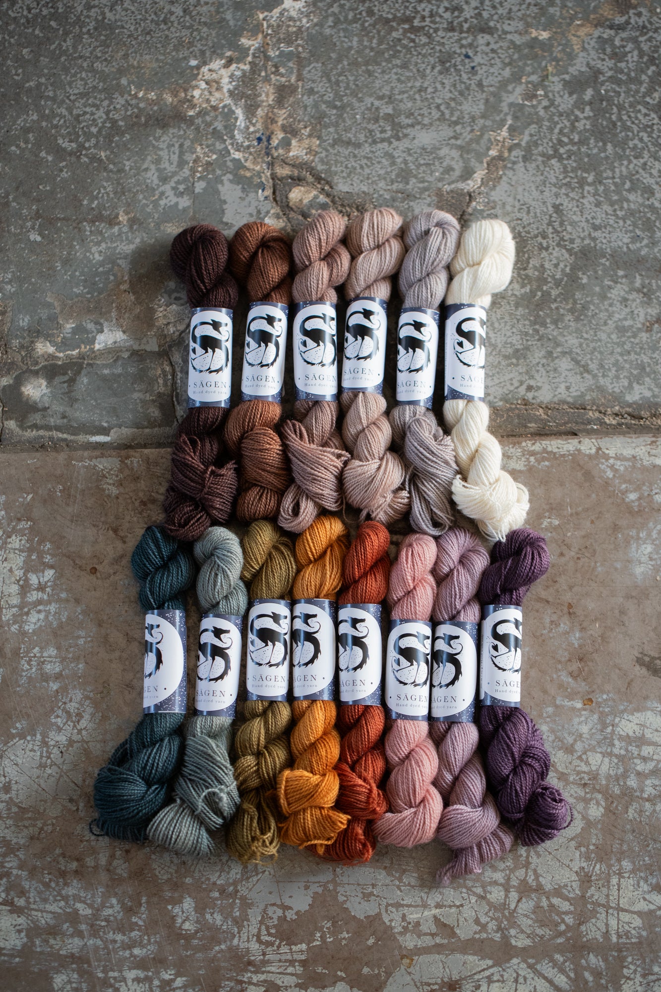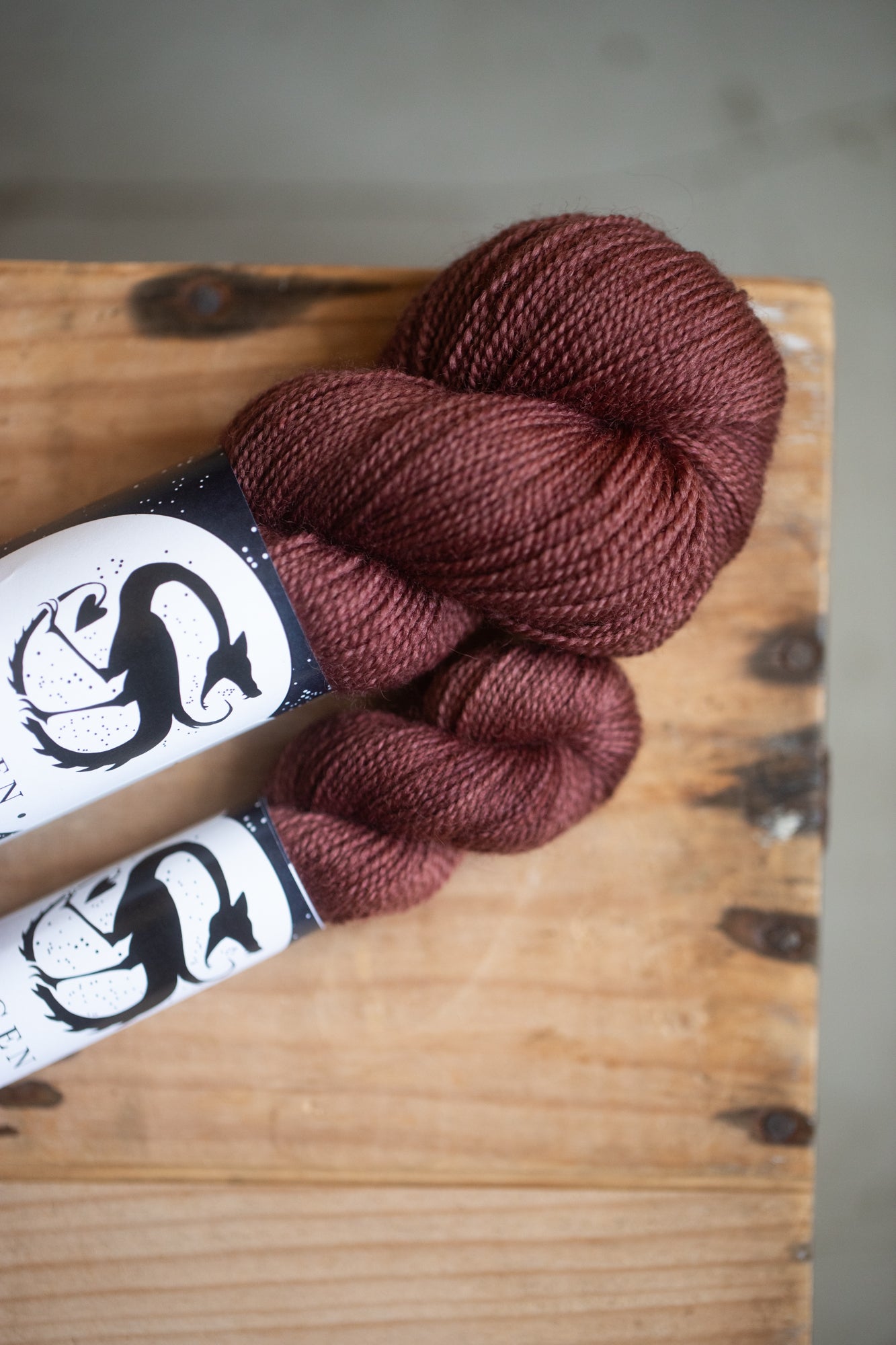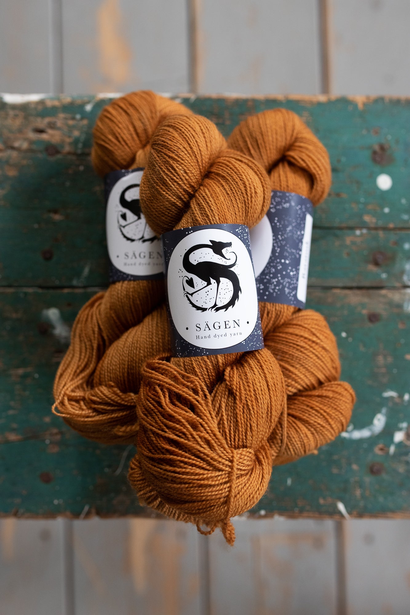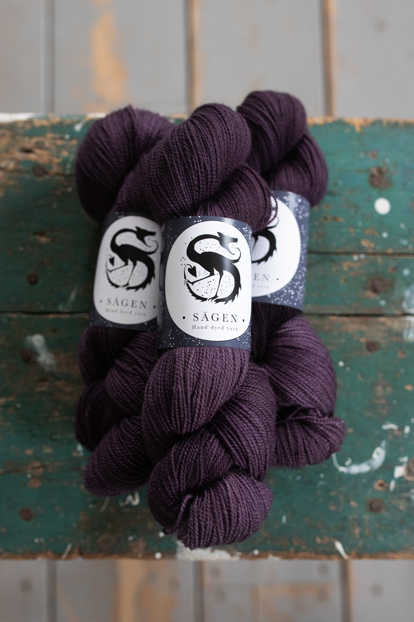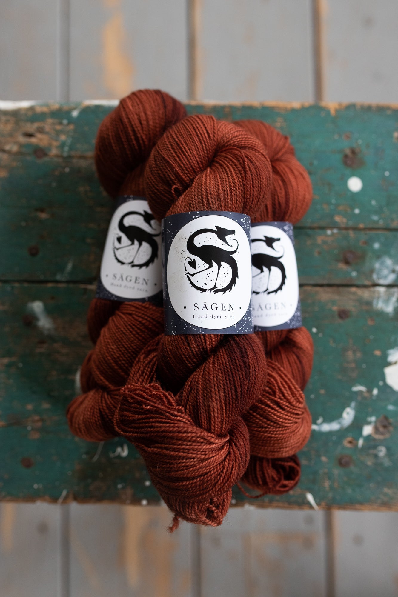 All yarns from Sägen are hand dyed by Lotta H Löthgren, using high quality acid dyes. The colourways are named after creatures, entities, details or ideas from folklore and old stories, and Sägen is the Swedish word for a certain kind of folk story. My aim is to create a palette of colours that are just as beautiful on their own as they are to combine, and that knitters and makers can return to over the years.