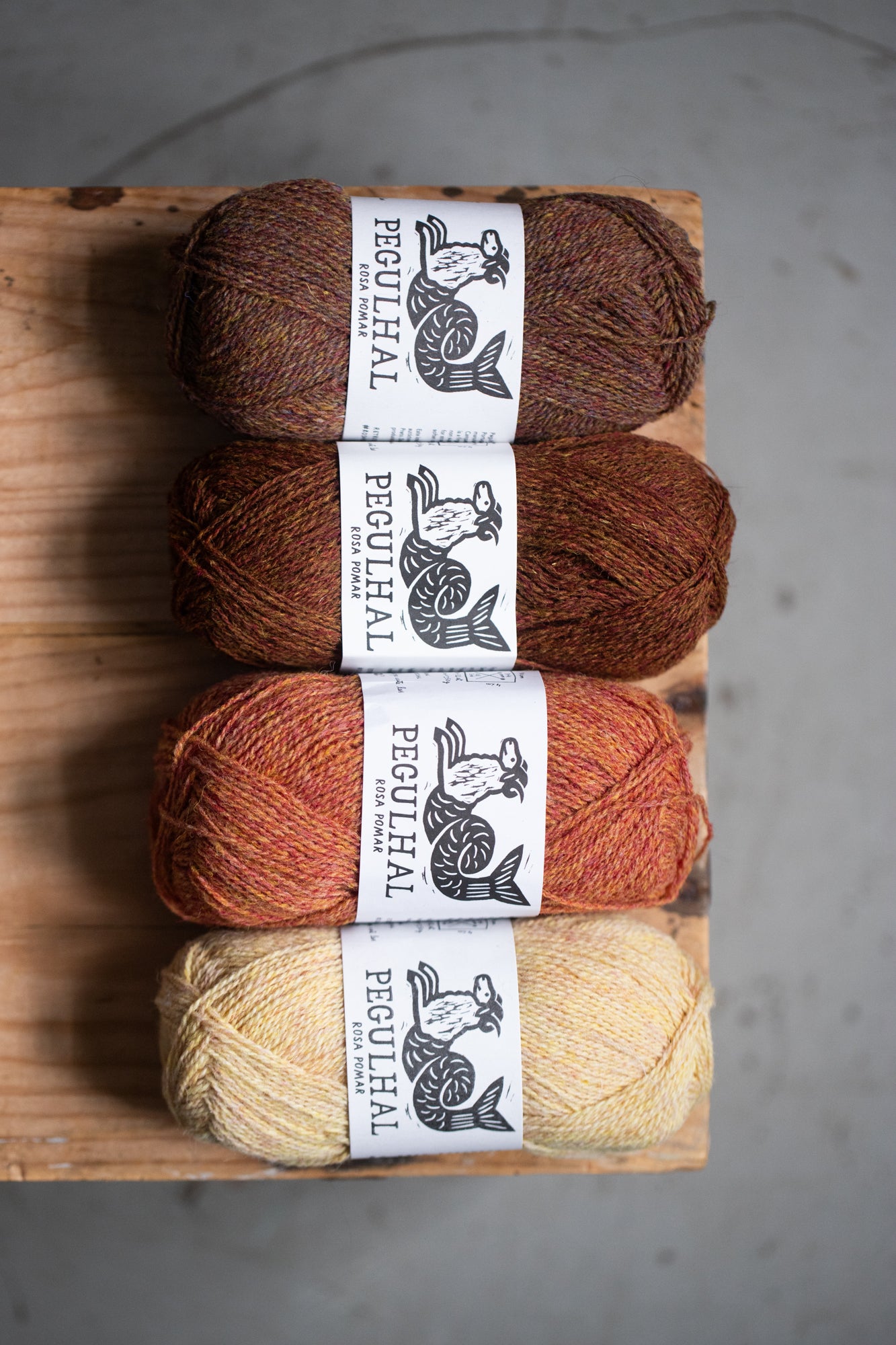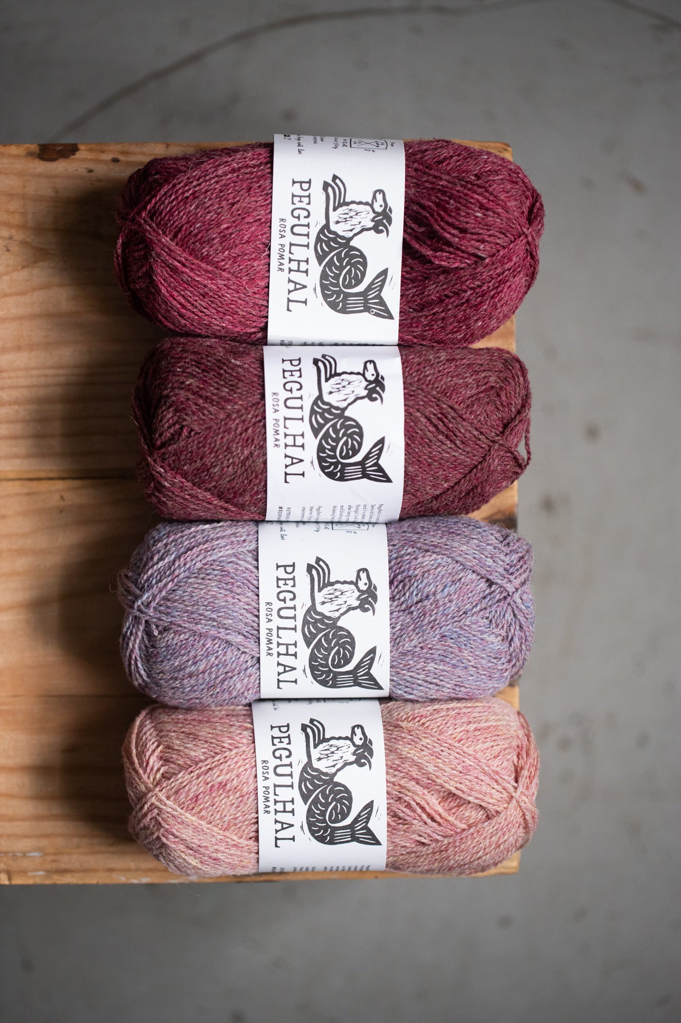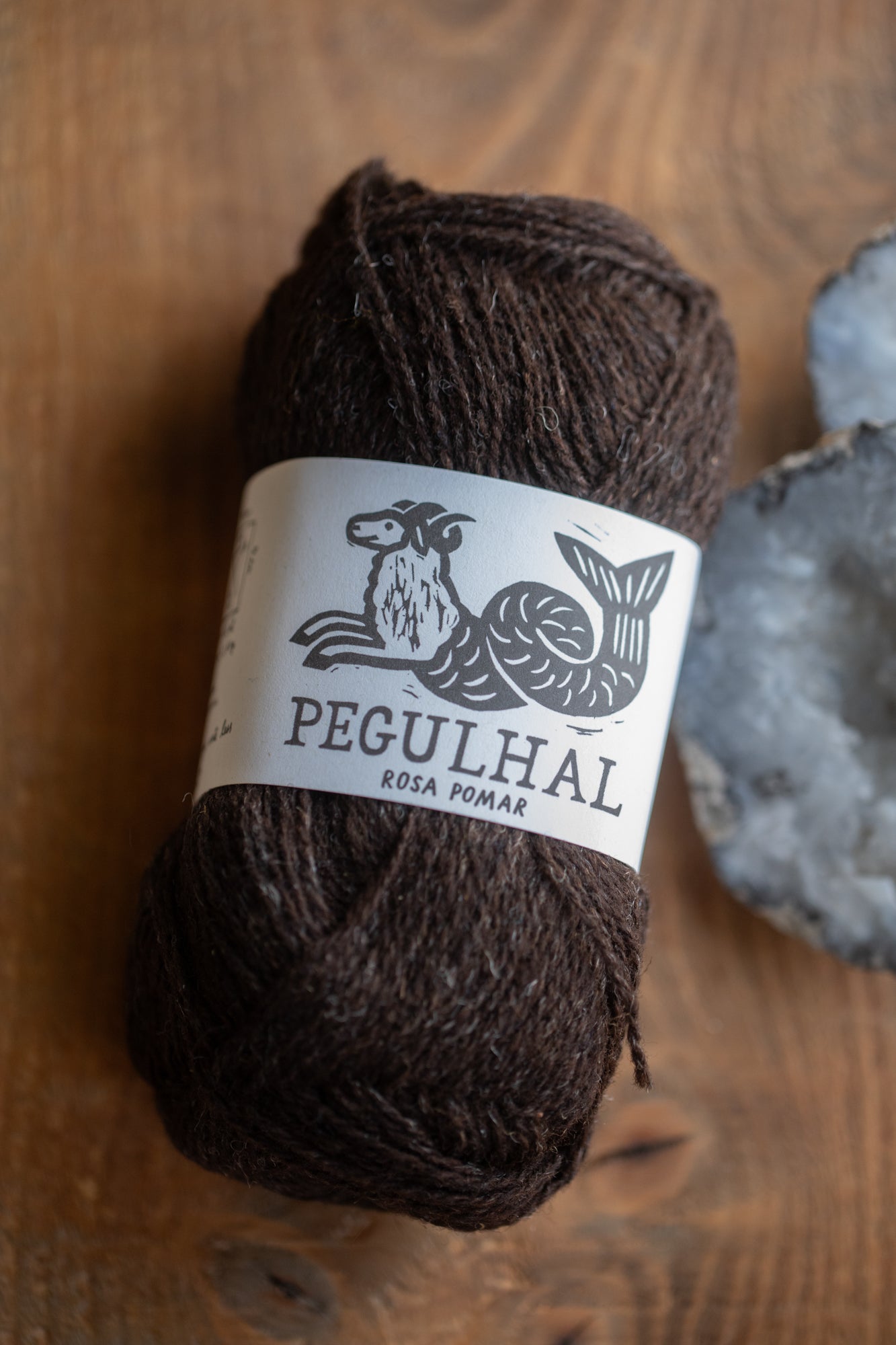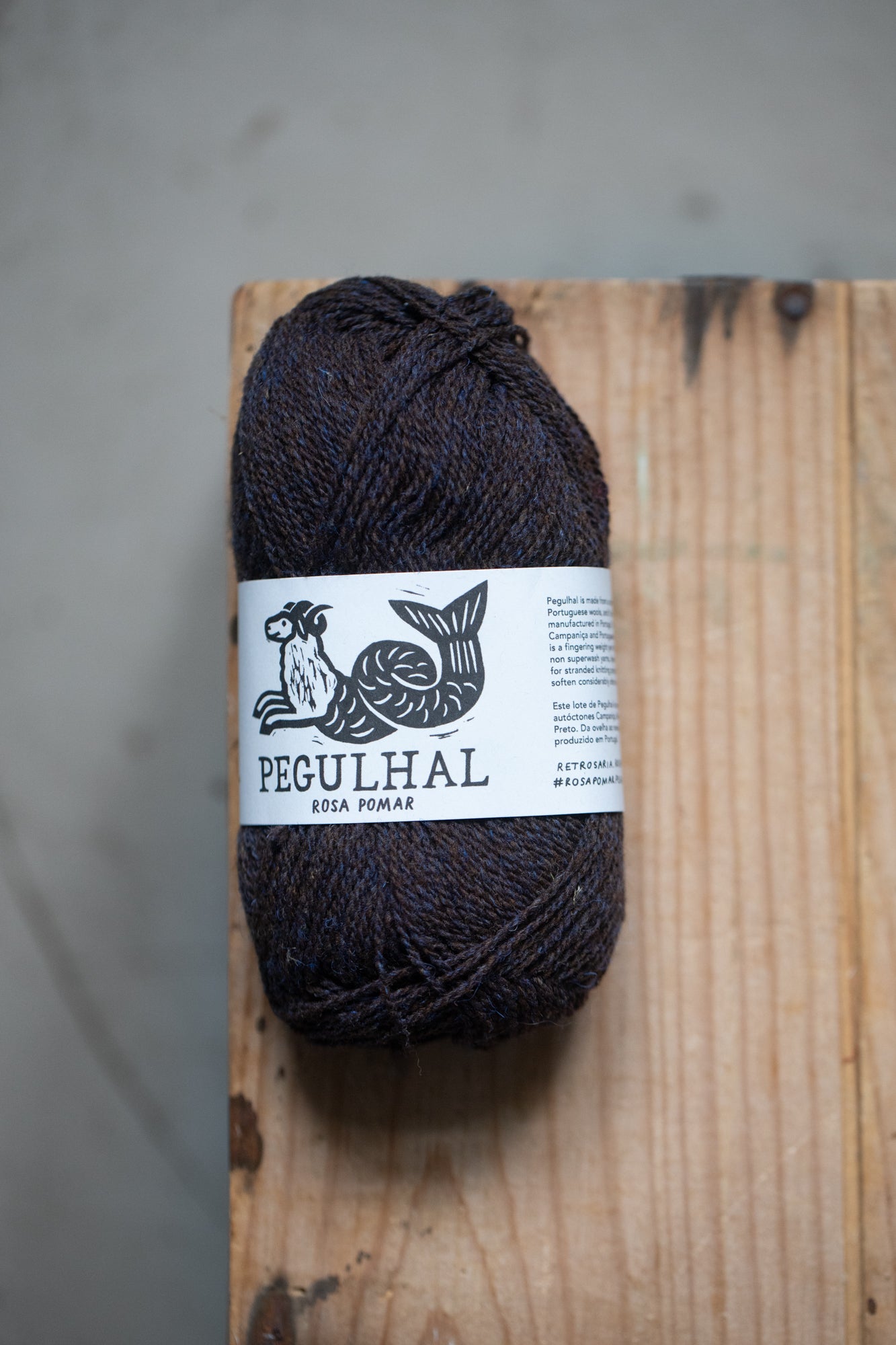 Pegulhal is a fingering weight yarn for knitters who like non superwash wooly yarns, by Retrosaria Rosa Pomar in Lisbon. It's dyed in the wool and ideal for stranded knitting project! The wool comes from different native Portuguese breeds: the latest batch is made with Campaniça and Black Merino.