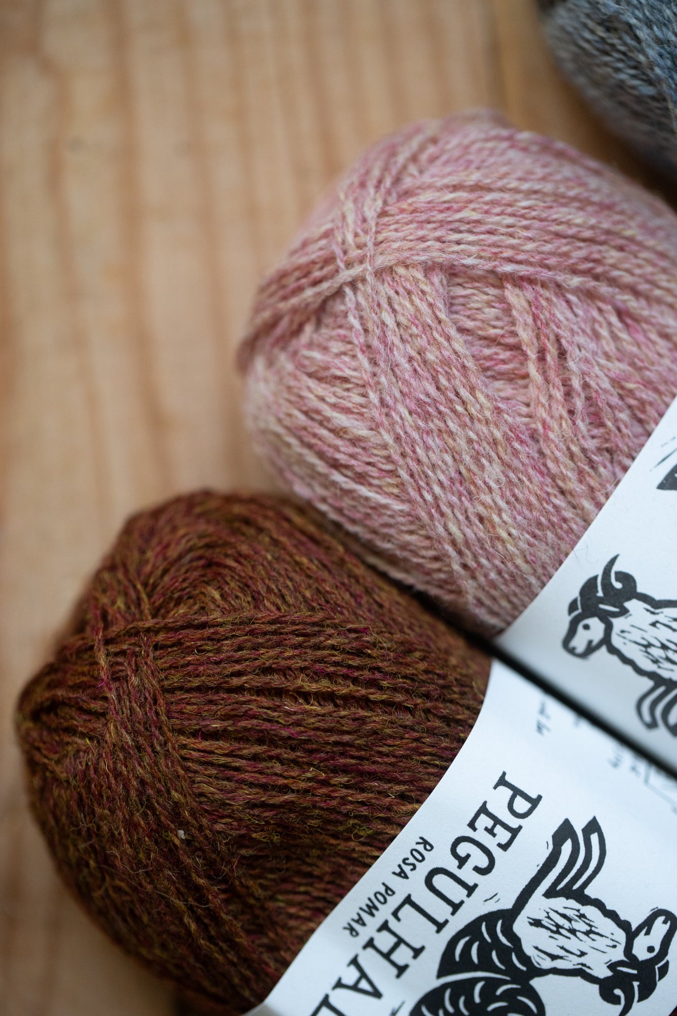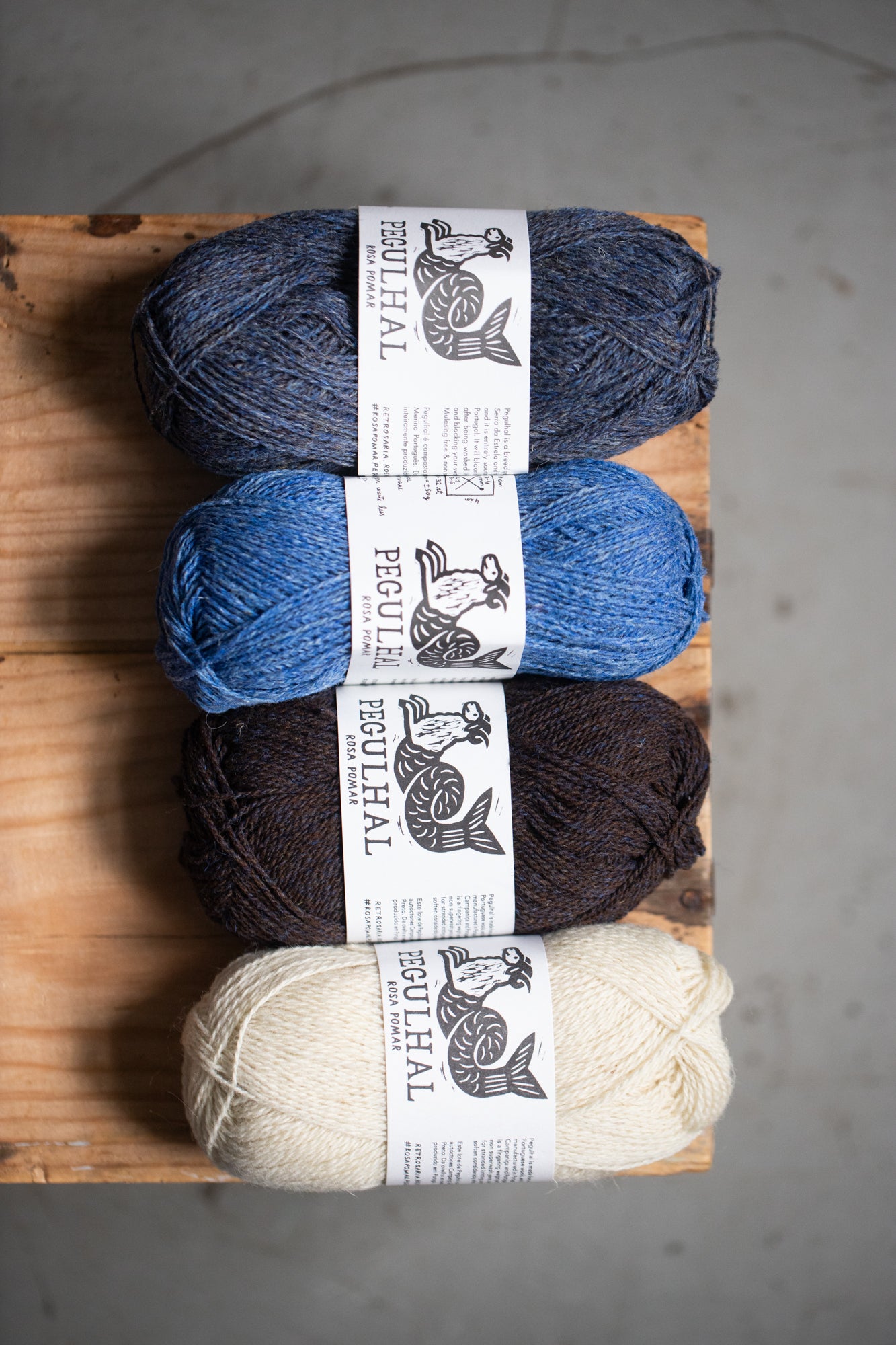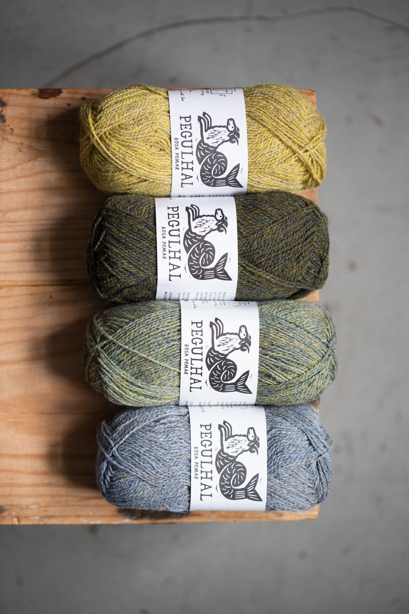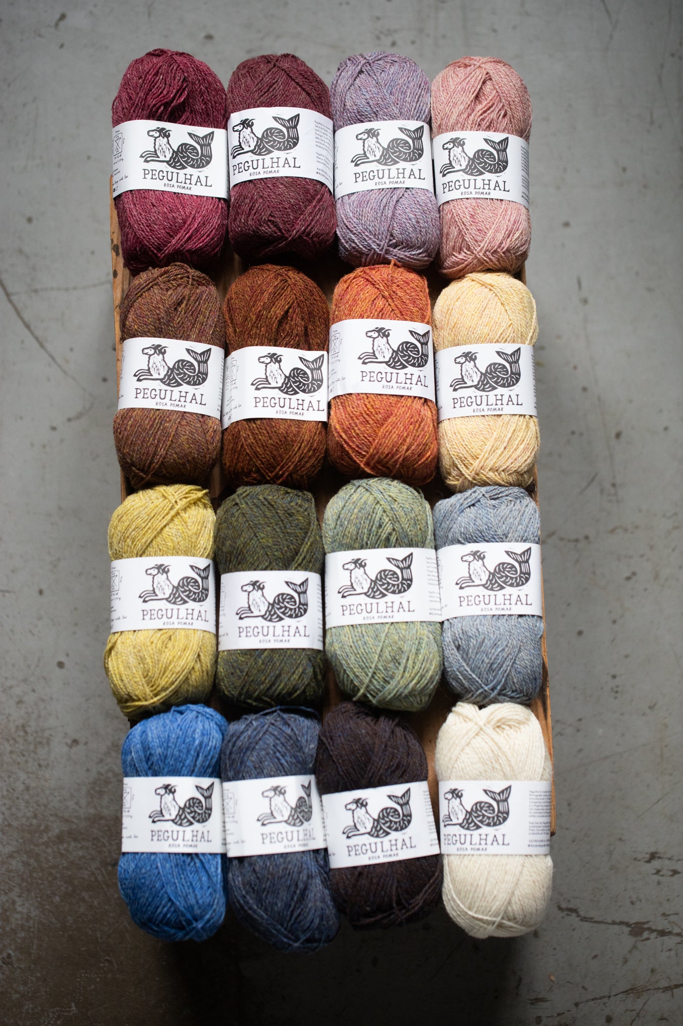 Pegulhal is a fingering weight yarn for knitters who like non superwash wooly yarns, by Retrosaria Rosa Pomar in Lisbon. It's dyed in the wool and ideal for stranded knitting project! The wool comes from different native Portuguese breeds: the latest batch is made with Campaniça and Black Merino.