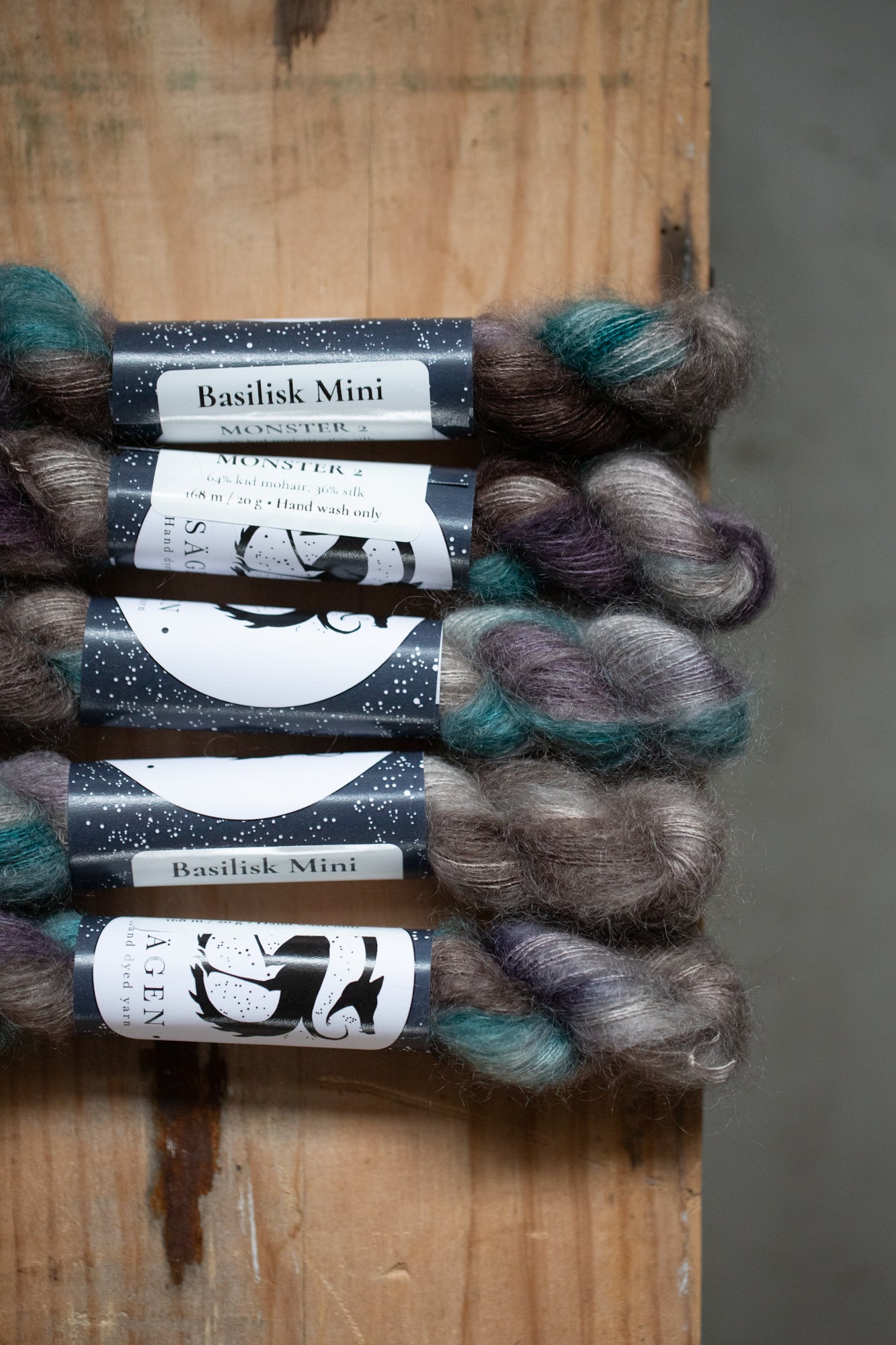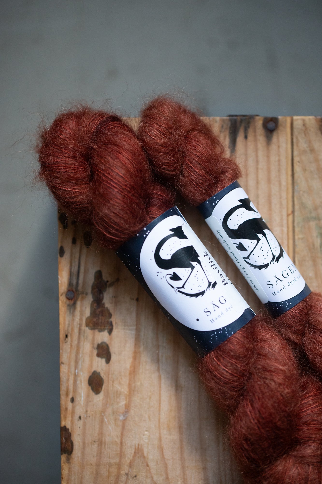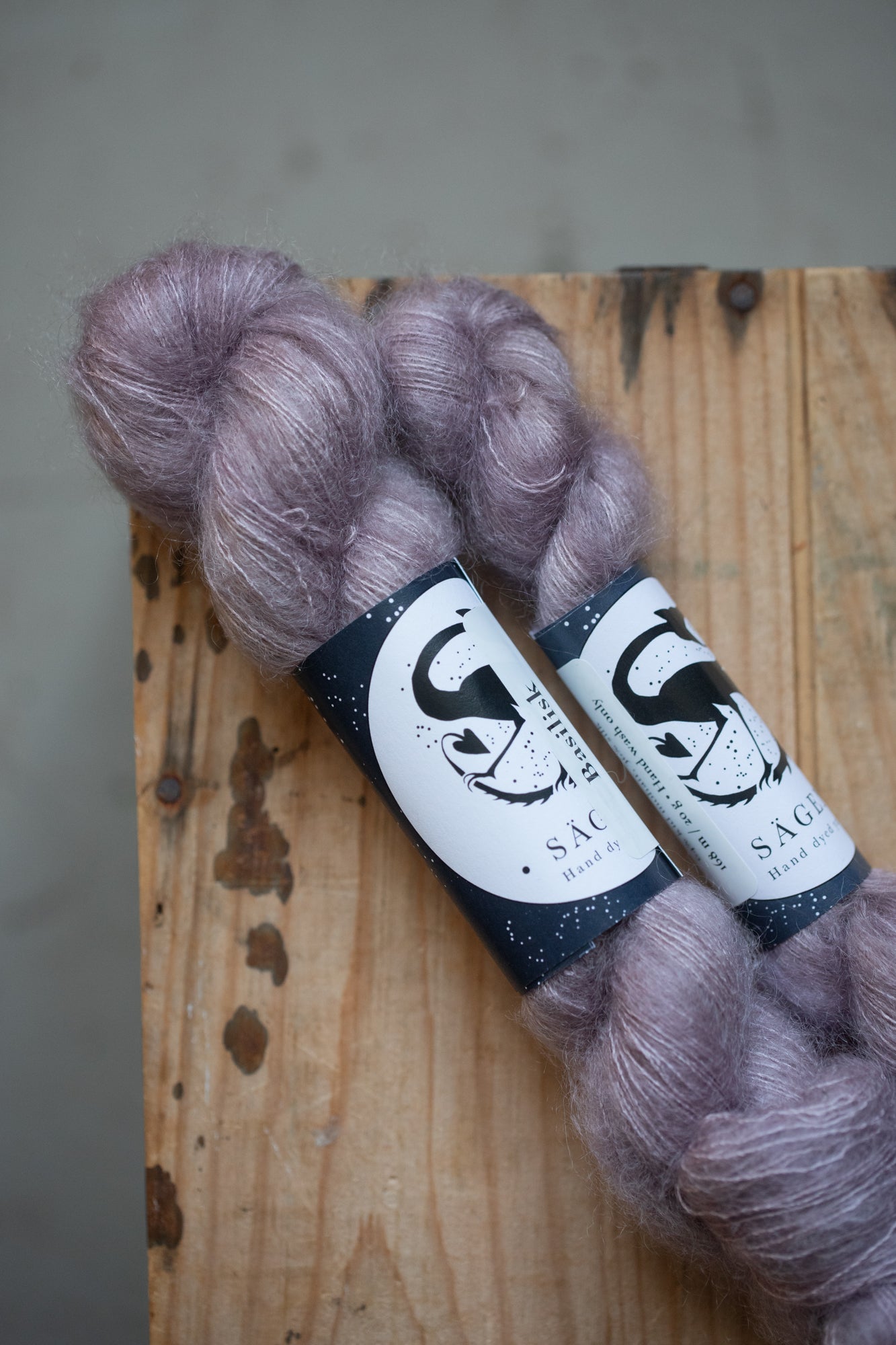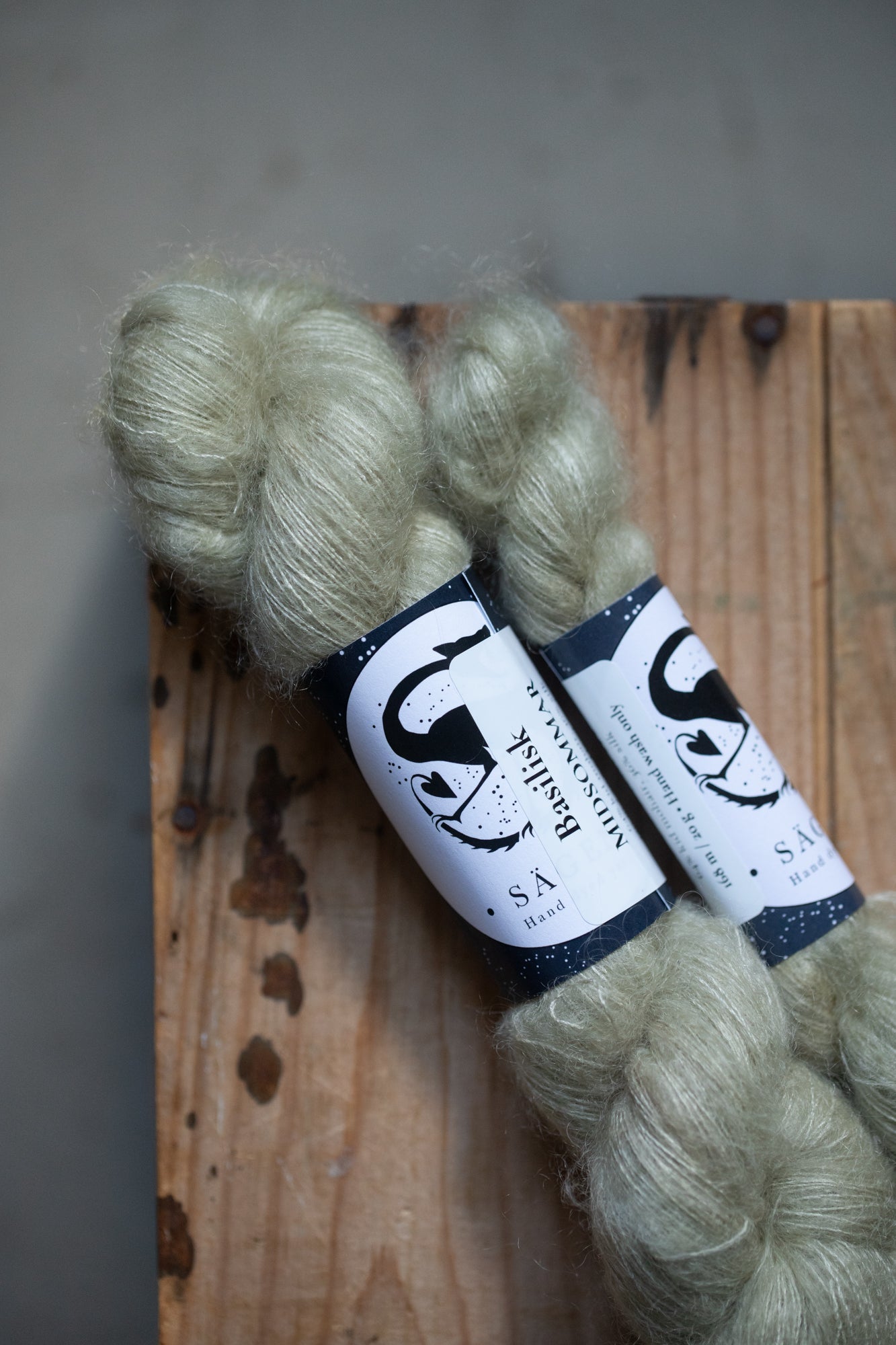 All yarns from Sägen are hand dyed by Lotta H Löthgren, using high quality acid dyes. The colourways are named after creatures, entities, details or ideas from folklore and old stories, and Sägen is the Swedish word for a certain kind of folk story. My aim is to create a palette of colours that are just as beautiful on their own as they are to combine, and that knitters and makers can return to over the years.