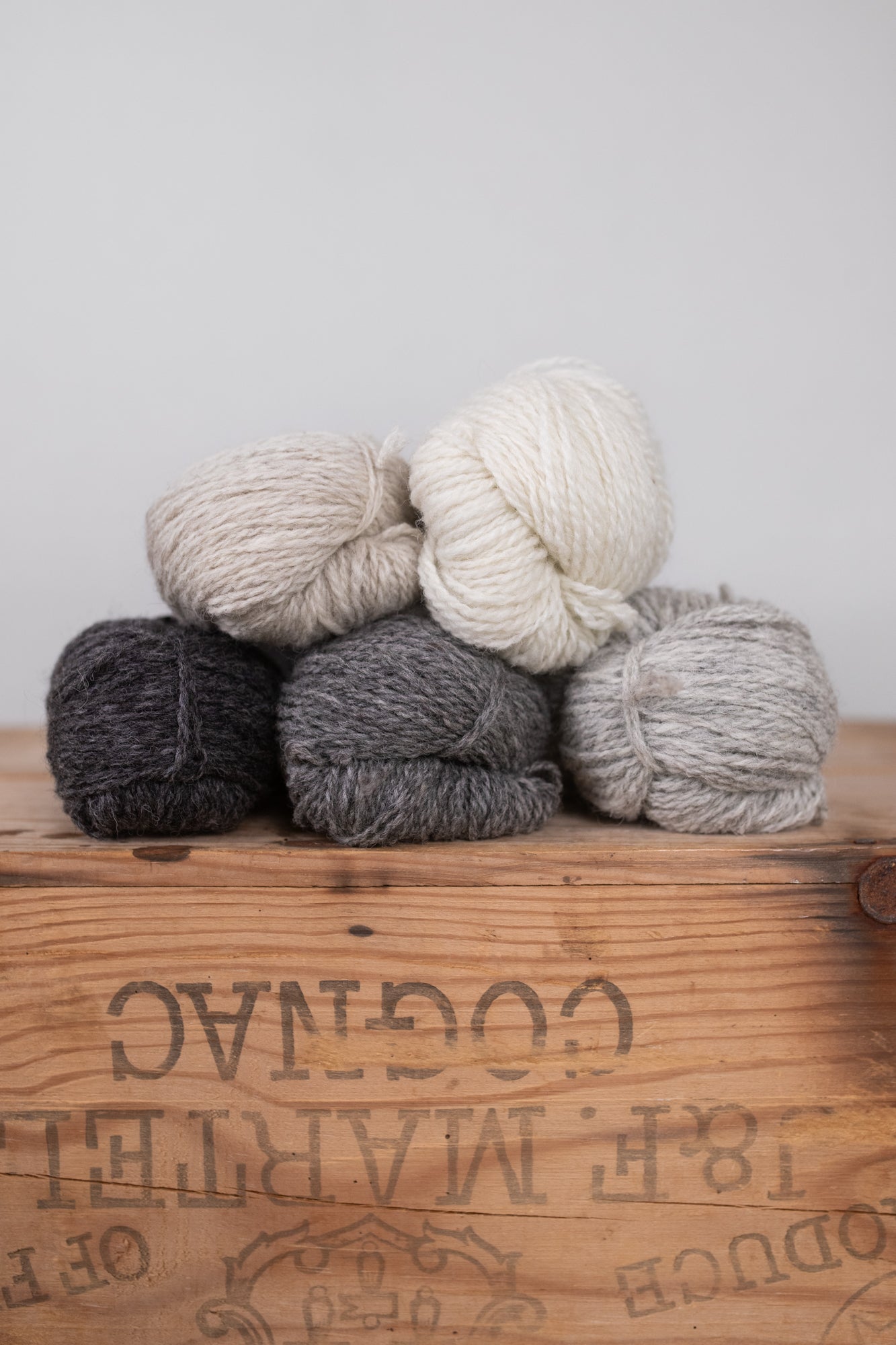 Processed in a mill in England’s historical textile region of West Yorkshire, Lore is made of 100% lambswool from the Romney sheep breed also referred to locally as Kent lamb. It is an honest woolen spun DK weight yarn that blooms into a beautiful knitted fabric after washing. Garments made from Lore will wear well and are perfect for everyday and special adventures alike. Lore has a nice stitch definition for cabled pullovers or slouchy hats, and lends itself very well to colourwork projects.