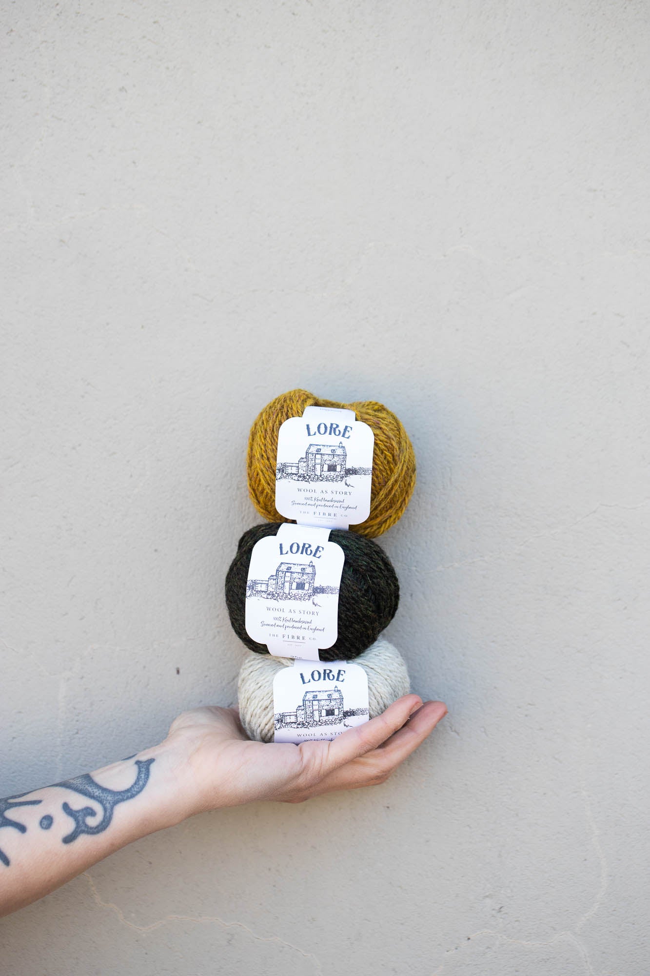These minis are the perfect companions to the full hanks of Lore, a wonderful 100% lambswool yarn fully produced in England. It is an honest woolen-spun DK weight yarn that blooms beautifully after washing, making it a perfect yarn for colourwork.