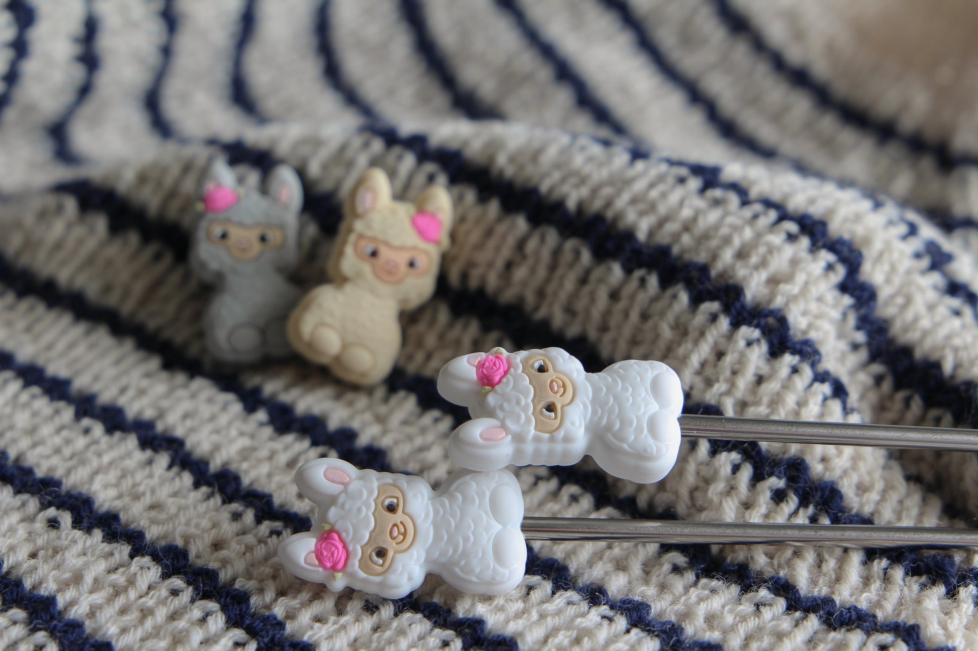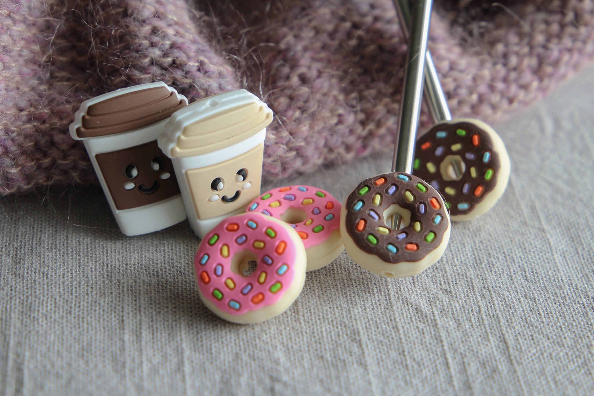 These adorable stitch stoppers are made of silicone and can easily be attached to your knitting needles to keep your stitches from falling out. They will fit needles from 2,5 mm and up to 10 mm. Sold in pairs.
