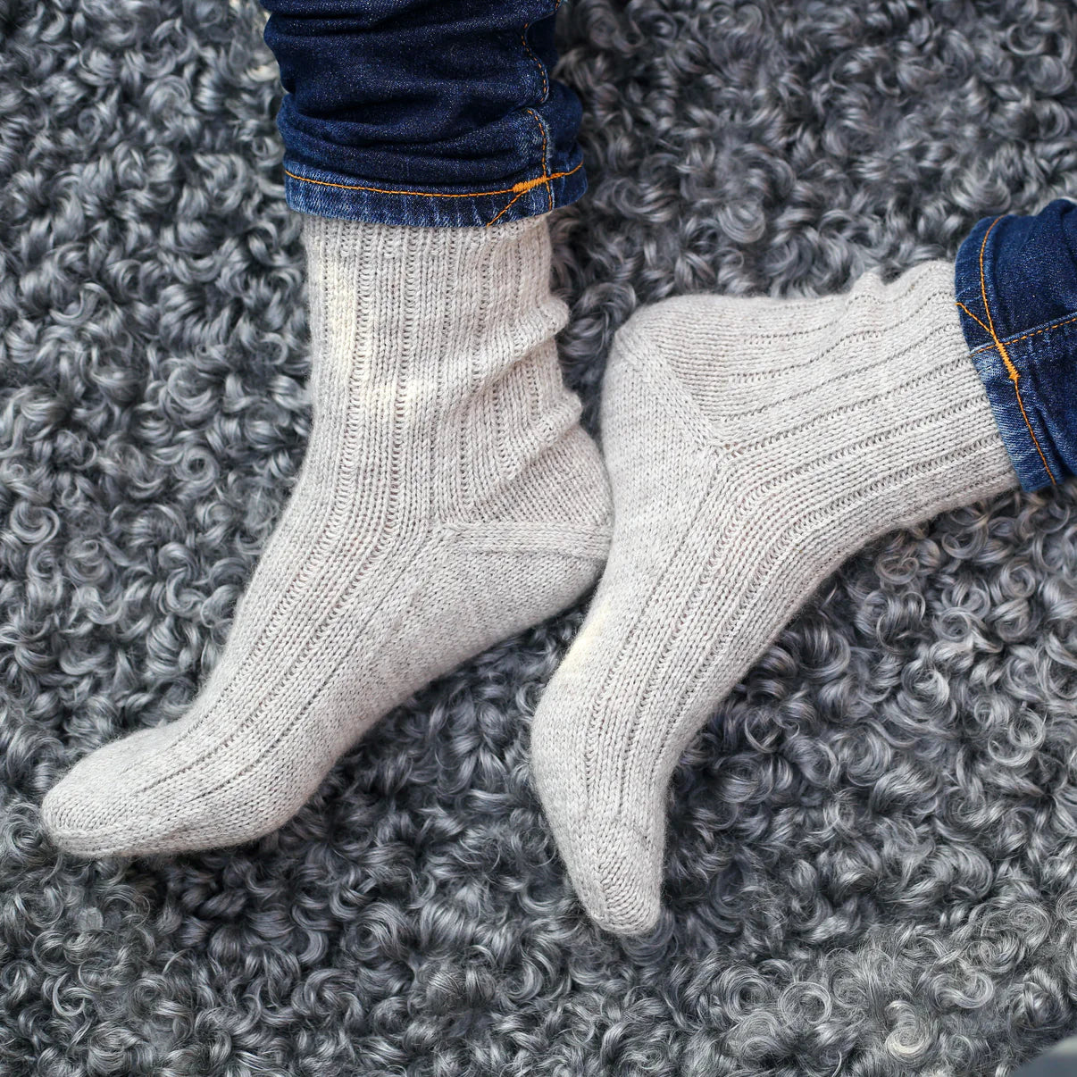 Askim - en ribbad socka med modifierad istickshäl, designade av Hagenhuset.