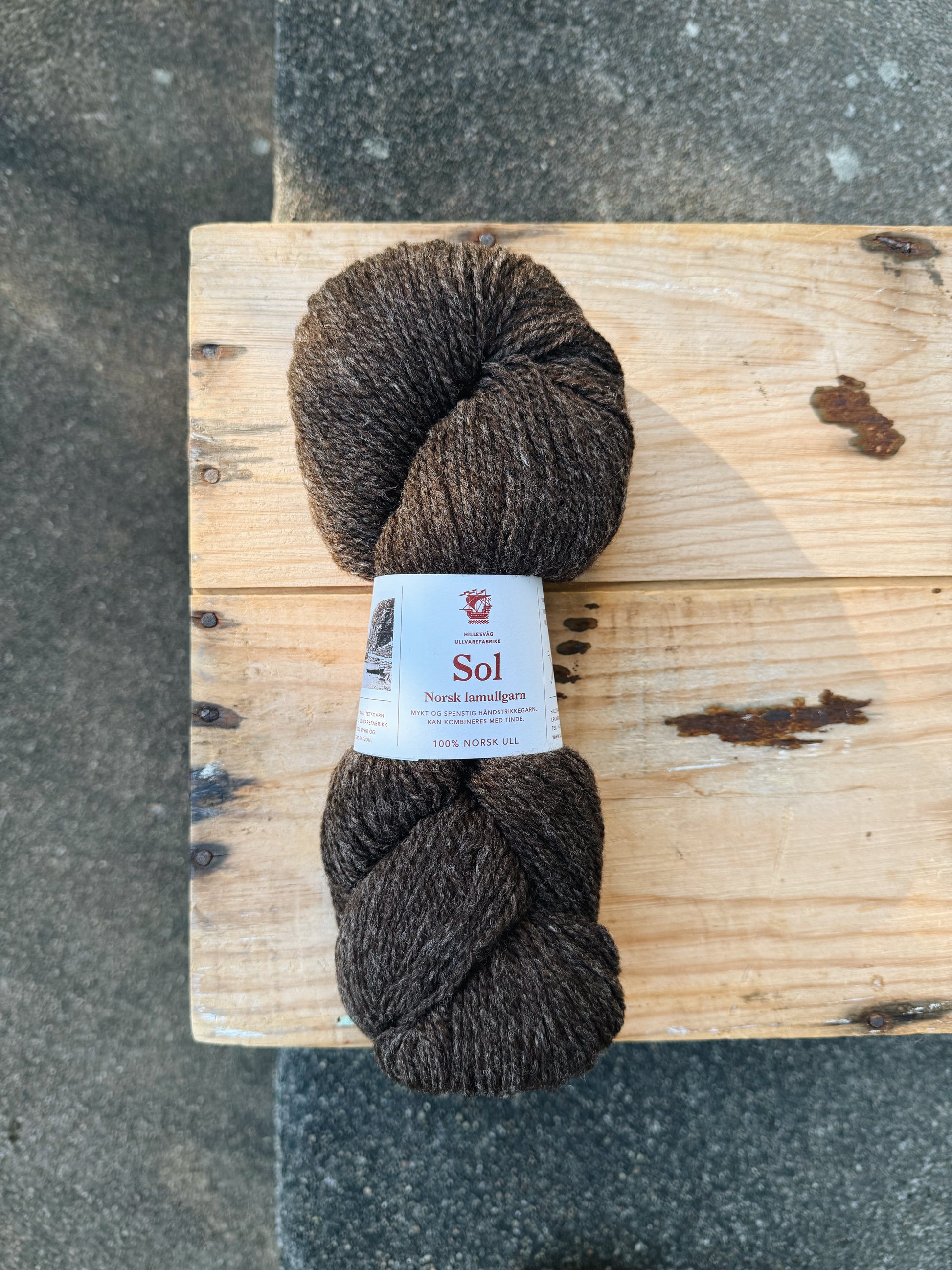 Sol är ett 2-trådigt kardgarn spunnet av 100% extra fin norsk lammull (28 micron) från fårrasen Norsk kvit sau. Det är mjukt och har fin elasticitet, och alla färger som använts för infärgning är GOTS-certifierade. Sol passar utmärkt för både tröjor, koftor och värmande accessoarer och lämpar sig extra bra för flerfärgsstickning och steekade projekt!