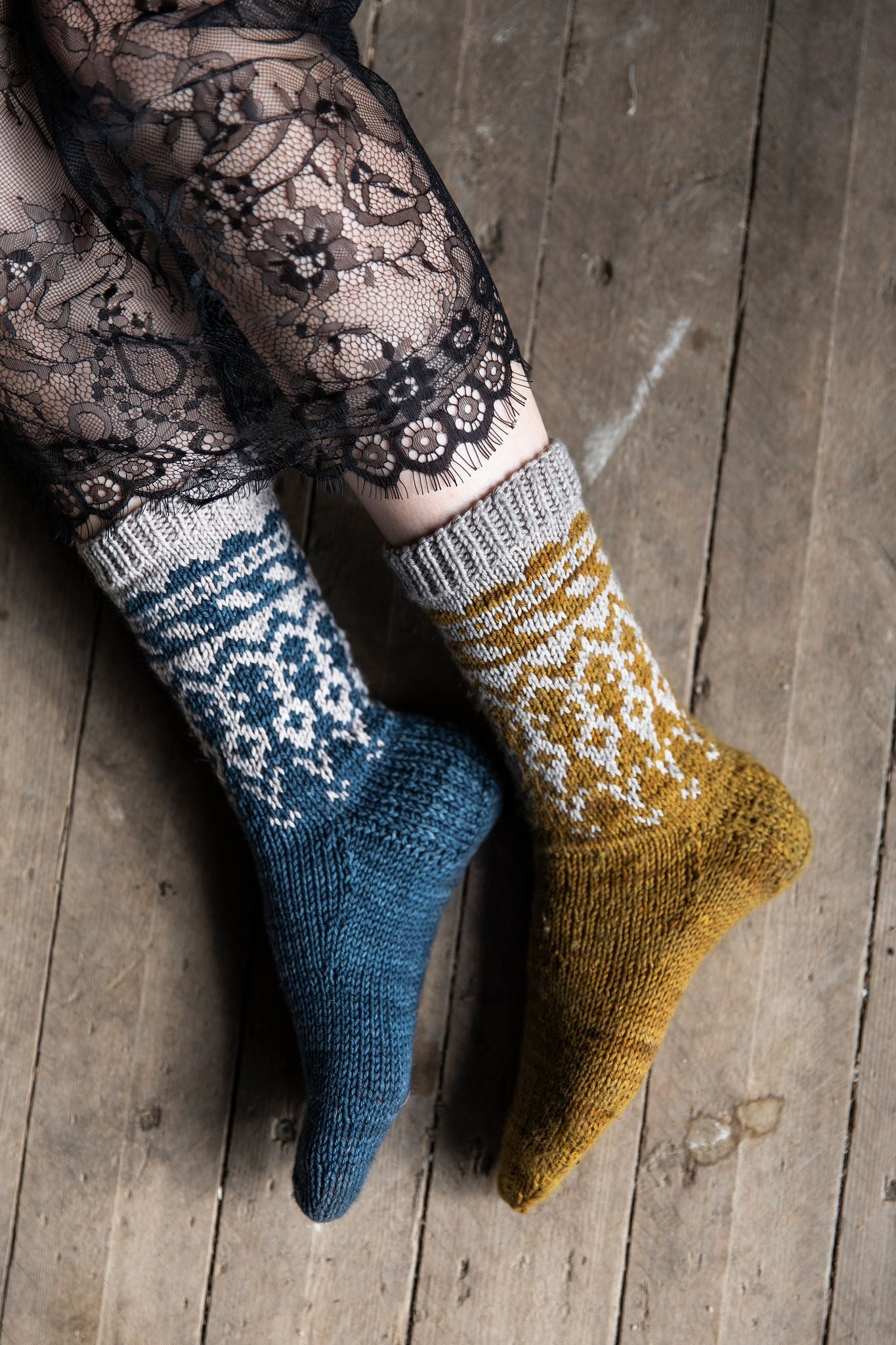 All of the designs are knitted in one piece and the colorwork only uses two colours at the same time, making them accessible to all levels of knitters. The patterns use a variety of lighter and heavier yarns and include several options for suitable yarns.