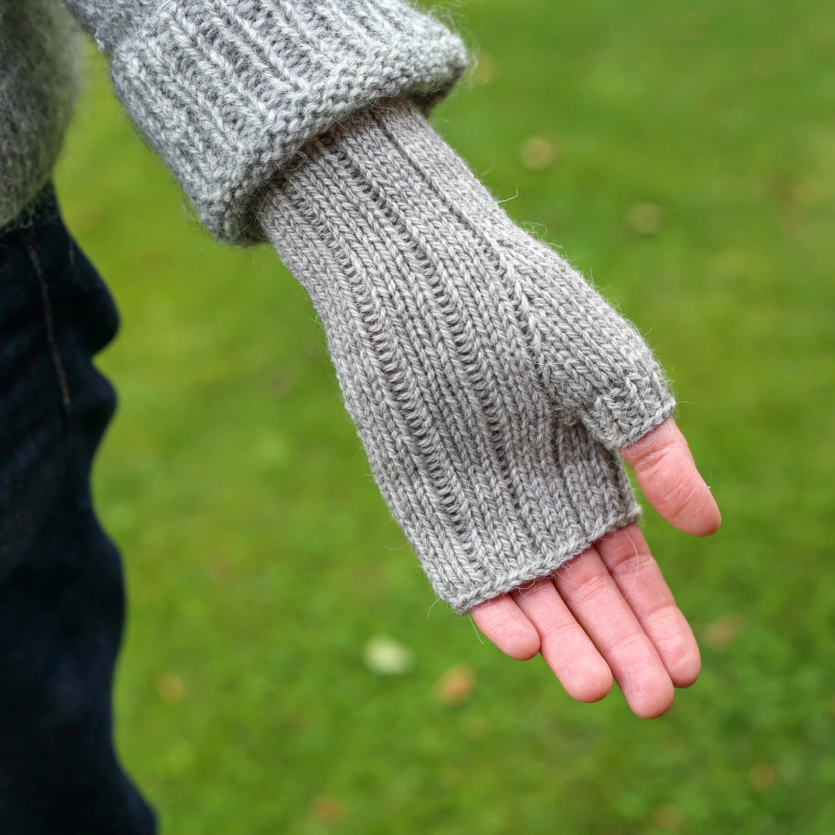 Halvvanten Pilea DK stickas runt utan sömmar, nedifrån och upp, i 3x1 resår.